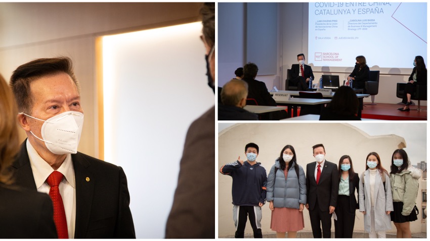 庞培法布拉大学UPF-BSM商学院邀请了西班牙知名华商、西班牙华侨华人社团联谊总会林传平主席作为主讲嘉宾,周倩莹 (Núria Zhou)庞培法布拉法学、工商管理双学位、UPF-BSM法学硕士校友作为助讲嘉宾。为在校学生讲述了后疫情时代,中国、加泰罗尼亚和西班牙之间的商业机会。