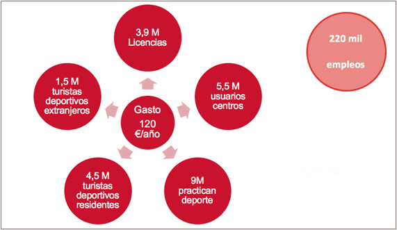 Que el deporte es un sector económicamente dinámico y con un por relativamente importante, de ello dan fe los estudios sobre su peso en el conjunto de la economía territorial [3]. El deporte representa el 2,12% del PIB en el conjunto de los países de la Unión Europea y el 1,44% en el caso español [4]. Tanto desde el punto de vista de la oferta (entidades y empresas productoras de bienes y servicios), como desde la demanda (personas que practican deporte y actividad física; asisten en directo o a través de los medios de comunicación a los espectáculos deportivos; los que son turistas deportivos o, en definitiva, hacen gasto directa o indirectamente relacionado con el deporte), los datos confirman esta realidad [5] [6] [7].